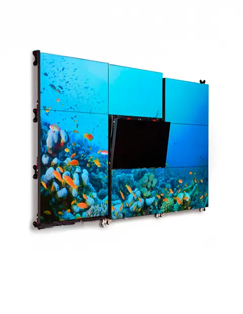 Mur d’images professionnel 55’’ Full HD (1920×1080), luminosité 500 cd/m², bords ultra-fins ≤3,5 mm et angle de vision 178°. Connectiques HDMI, DVI, VGA, USB et contrôle RS232. Installation murale ou sur structure pour événements et salons.x
