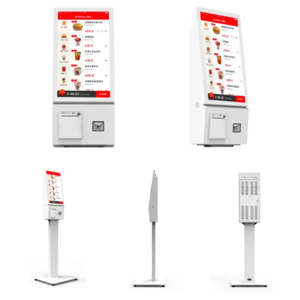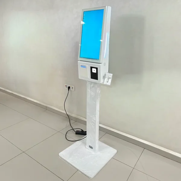 Borne de commande self-ordering 21,5 pouces, idéale pour restaurants, fast-foods et cafés au Maroc. Équipée d’un écran Full HD, d’une imprimante thermique intégrée, d’un scanner QR code et d’un lecteur de carte sans contact. Solution moderne pour réduire l’attente et améliorer l’expérience client.