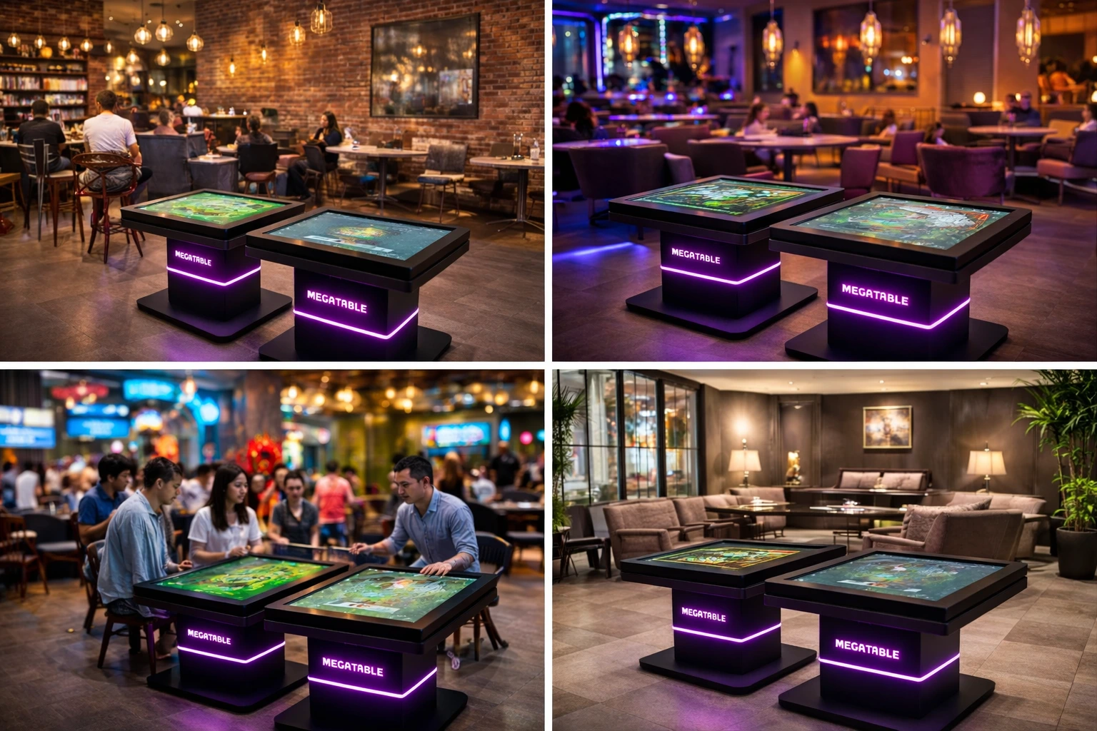 MEGATABLE est une table de jeux tactile interactive, permettant à 1 à 6 joueurs de jouer ensemble. Équipée d’un écran 43″ multi-touch, d’un monnayeur électronique et du WiFi pour télécharger de nouveaux jeux, elle est idéale pour les salles de jeux, cafés et entreprises.